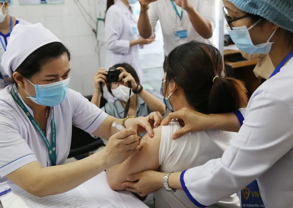 Tiêm vaccine phòng COVID-19 cho nhân viên y tế tại TP.HCM. Ảnh: HOÀNG GIANG