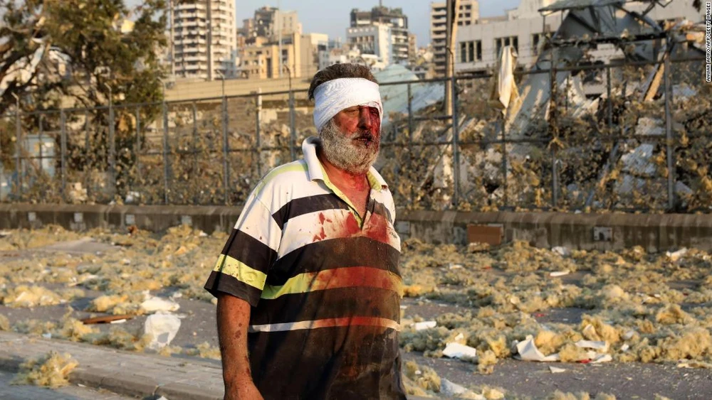 Một người dân Beirut bị thương sau vụ việc. Ảnh: ANWAR AMRO/AFP/GETTY/CNN