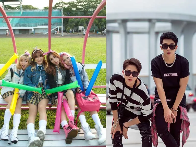 Nhóm nhạc nữ LipB (trái) và nhóm nhạc nam Uni5 là hai “gà chiến” của cặp Đông Nhi - Ông Cao Thắng. Ảnh nhân vật cung cấp