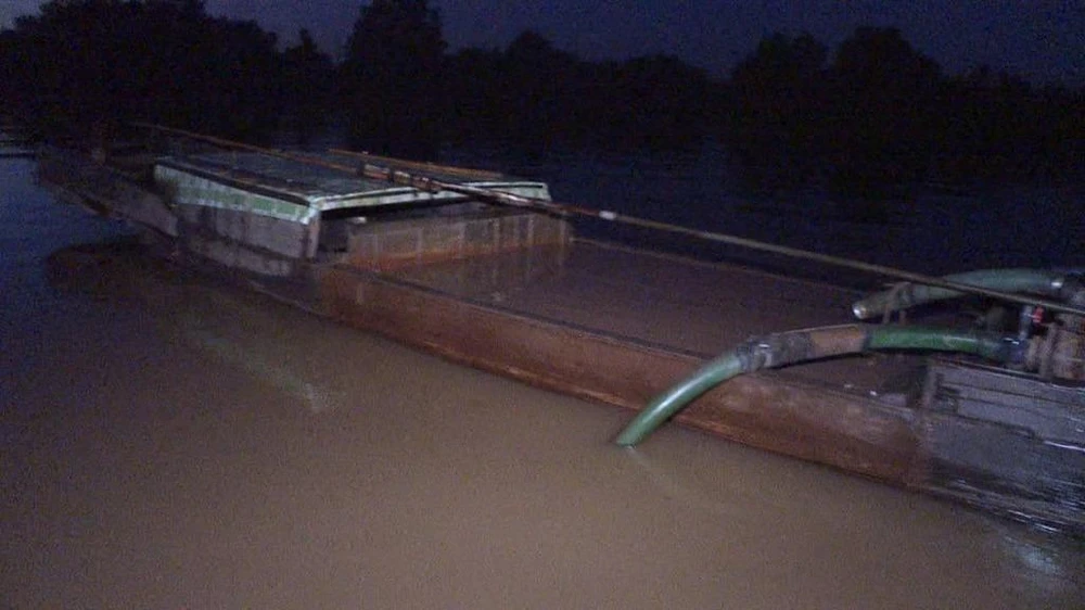 Theo đó, khoảng 2 giờ sáng 1-7, tổ công tác tuần tra đoạn giáp ranh giữa thủy phận huyện Long Hồ và huyện Cái Bè, Tiền Giang đã phát hiện hai sà lan đang hút cát trái phép. Khi thấy lực lượng tuần tra, hai sà lan tăng tốc bỏ chạy nhưng một chiếc số hiệu TG-12773 không thoát. Do đây là khu vực giáp ranh nên tổ công tác chỉ lập biên bản và cho tài công viết cam kết không vi phạm.
