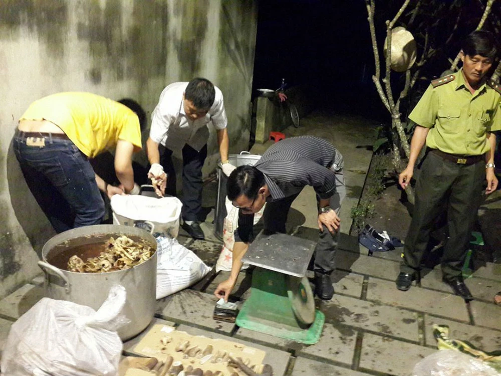 Khi lực lượng ập vào trong nhà ông Hải, có hơn 10 người đang nấu cao 1 con hổ với trọng lượng khoảng 230 kg. Tại hiện trường, lực lượng chức năng ghi nhận có 4 nồi nhôm lớn đã được bỏ thịt hổ, xương hổ, sừng sơn dương, mai rùa, sọ khỉ, để tiến hành nấu cao.