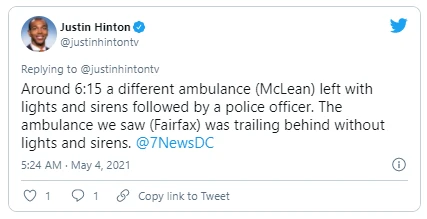 Một chiếc xe cấp cứu được điều đến sau đó và rời đi dưới sự hộ tống của cảnh sát. Ảnh: TWITTER