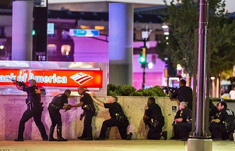 Báo The Dallas Morning News đưa tin có năm cảnh sát thiệt mạng và bảy cảnh sát bị thương.