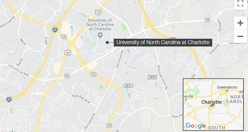 Vị trí trường Đại học Bắc Carolina tại thành phố Charlotte. Ảnh: CNN