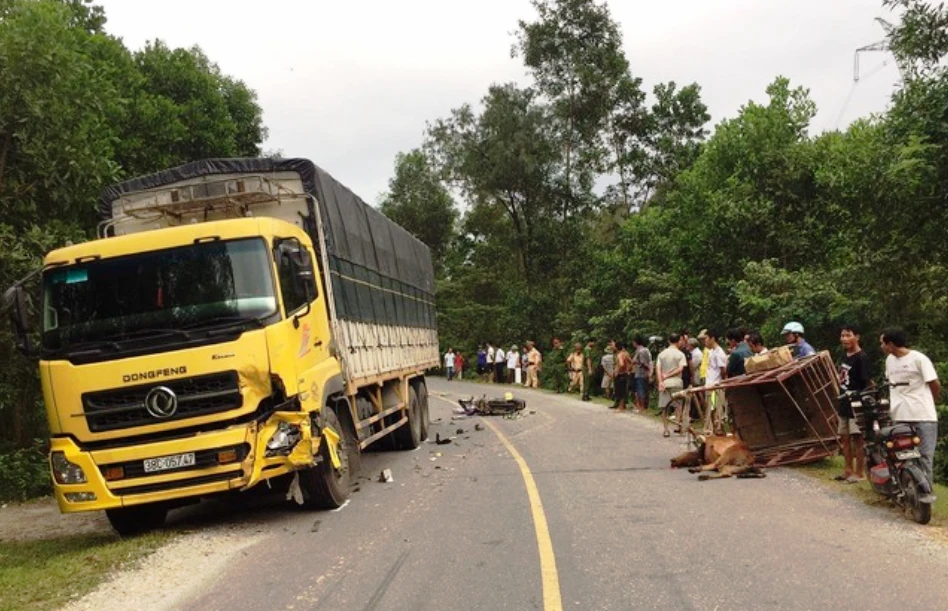 Cú tông mạnh khiến anh Hòa bị thương được đưa đi bệnh viện cấp cứu. Xe máy, xe cải tiến và xe ô tô đều bị hư hỏng nặng, con bê chết tại chỗ.