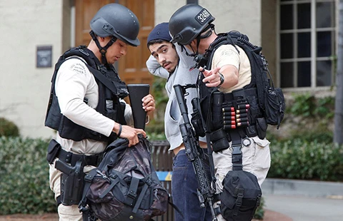 Sau đó, cảnh sát trưởng Charlie Beck thông báo vụ nổ súng xảy ra trong văn phòng khoa kỹ thuật. Hung thủ đã tự sát. Một nạn nhân xấu số là William S. Klug, 39 tuổi, trợ giảng về kỹ thuật cơ khí và hàng không vũ trụ. Cảnh sát đã tìm thấy một khẩu súng và một bức thư ở hiện trường. Hiện chưa rõ động cơ nổ súng. Theo báo Los Angeles Times, dựa theo tư thế của hai tử thi, cảnh sát cho rằng một người trẻ có thể là sinh viên đã bắn chết thầy rồi quay súng tự sát. Toàn trường đóng cửa trong hai giờ để cảnh sát điều tra. Nhiều cảnh sát trang bị vũ khí tuần tra trong trường. Các sinh viên rời khỏi hiện trường đều bị khám xét (ảnh).