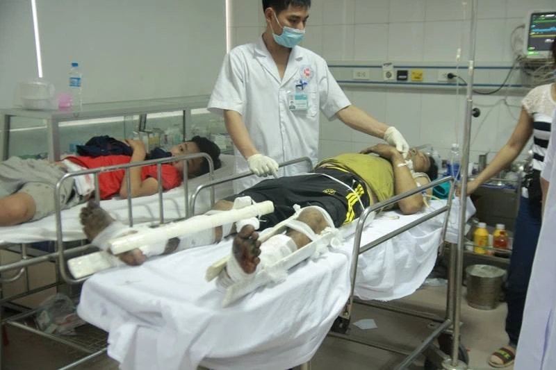 Cho đến chiều 2-6, hai nạn nhân bị thương là anh Phạm Đình Tú (28 tuổi, trú xã Đô Thành, huyện Yên Thành, Nghệ An) và anh Võ Đình Hiệp (21 tuổi, trú huyện Nghi Lộc, Nghệ An) đã được xe cứu thương chở về BV Đa khoa 115 Nghệ An cấp cứu. Anh Tú và anh Hiệp đều bị bỏng nhẹ và đều bị thương phần chân.
