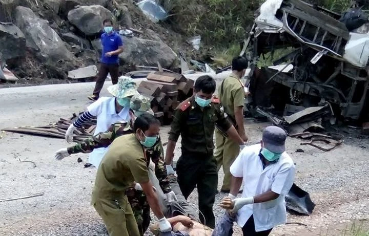 | Danh tính tám nạn nhân tử vong gồm: 1. Nguyễn Bá Lợi (45 tuổi, quê huyện Nghi Lộc, Nghệ An). 2. Nguyễn Kế Hải (43 tuổi, quê huyện Nghi Lộc, Nghệ An). 3. Nguyễn Thế Hậu (46 tuổi, quê huyện Nghi Lộc, Nghệ An). 4. Trần Thế Dũng (44 tuổi, quê huyện Nghĩa Đàn, Nghệ An). 5. Dương Ngọc Thạch (32 tuổi, quê huyện Nghĩa Đàn, Nghệ An). 6. Cao Văn Hoạt (23 tuổi, quê huyện Nghĩa Đàn, Nghệ An). 7. Đặng Văn Tương (41 tuổi). 8. Chưa xác định được danh tính Danh sách những người bị thương: 1, Hoàng Kế Chiến (34 tuổi, quê ở Nghệ An) 2, Phạm Đình Tú (28 tuổi, quê xã Đô Thành, huyện Yên Thành, Nghệ An). 3, Võ Đình Hiệp (27 tuổi, quê xã Nghi Lâm, huyện Nghi Lộc, Nghệ An). Hai người trên xe nhưng chỉ bị thương nhẹ, đã được đưa về Sở An ninh tỉnh Khăm Muộn (Lào) để phục vụ điều tra là: 1, Trần Viết Công (25 tuổi, quê TP Vinh, Nghệ An). 2, Nguyễn Văn Đô (19 tuổi, quê ở xã Nghi Hòa, huyện Nghi Lộc, Nghệ An). Lái xe là Nguyễn Đức Tú (25 tuổi, quê xã Đô Thành, huyện Yên Thành, Nghệ An) đã bỏ trốn khỏi hiện trường ngay sau vụ tai nạn xảy ra. |