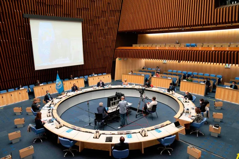 Một phiên họp của ban điều hành WHO về ứng phó với COVID-18 tại Geneva (Thụy Sĩ) ngày 5-10. Ảnh: Christopher Black—World Health Organization/AFP/GETTY IMAGES