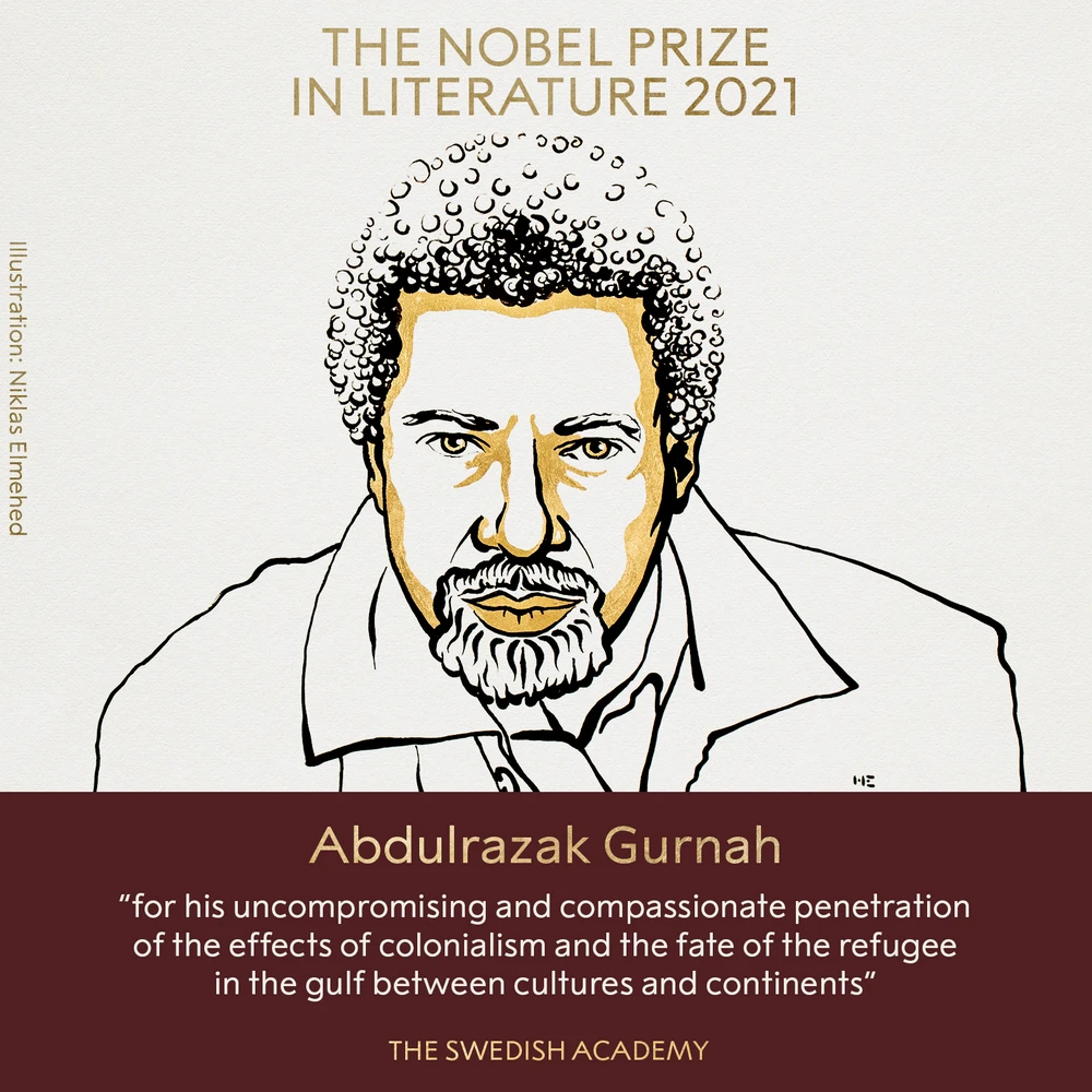 Ngày 7-10, Viện Hàn lâm Thụy Điển công bố giải thưởng Nobel Văn học năm 2021 được trao cho tiểu thuyết gia người Tanzanian Abdulrazak Gurnah với những tác phẩm khám phá di sản của chủ nghĩa thực dân và những người tị nạn, theo hãng AP.
