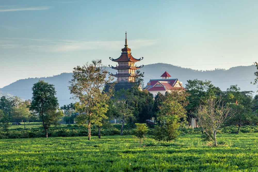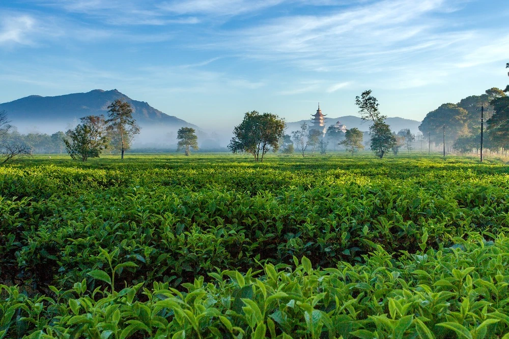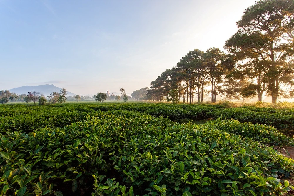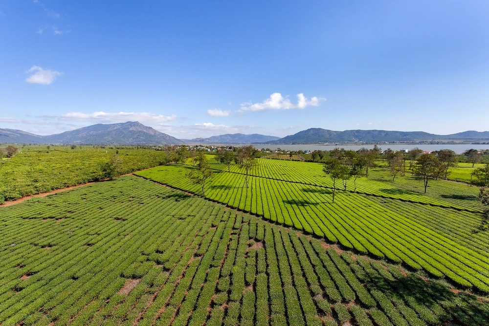 Biển Hồ chè là sự kết hợp giữa hồ nước thủy lợi và nương chè bạt ngàn với những búp chè non xanh mơn mởn.