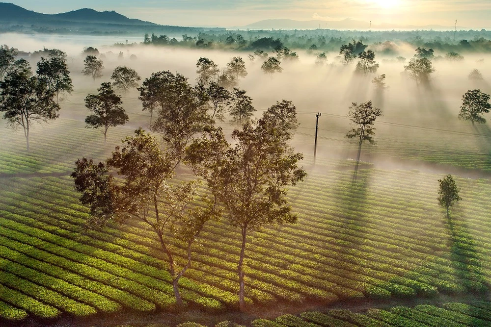 Từng khoảnh khắc vào buổi sáng ở Biển Hồ chè thật lộng lẫy