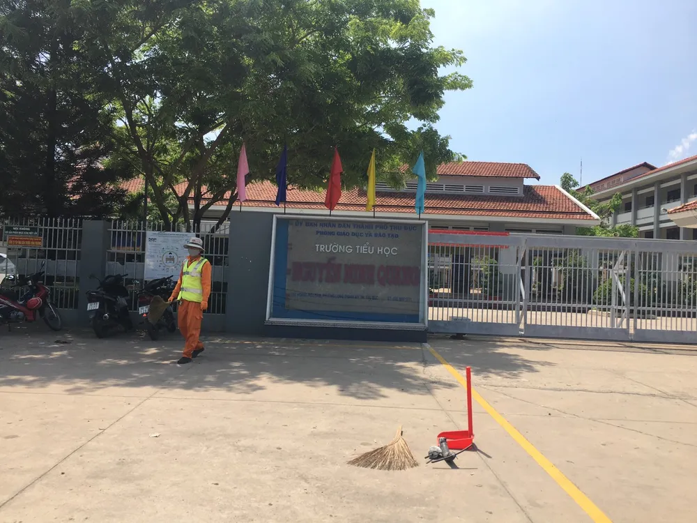 Ô dừng đỗ xe trước cổng trường tiểu học Nguyễn Minh Quang, TP Thủ Đức.