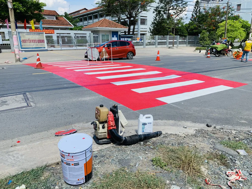 Đồng thời, sơn bổ sung vạch sơn giảm tốc dày 6 mm (5 m/vạch) tại một số cổng trường có nguy cơ mất an toàn giao thông. Hoạt động này nhằm tăng cường cảnh báo, hướng dẫn học sinh, cán bộ giáo viên nhân viên và cho người tham gia giao thông cũng như các phương tiện lưu thông chú ý khi qua khu vực trường học.