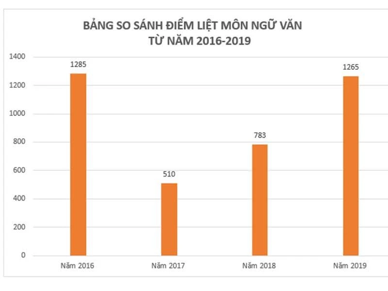 Số lượng bài điểm liệt môn ngữ văn từ năm 2016 đến 2019.