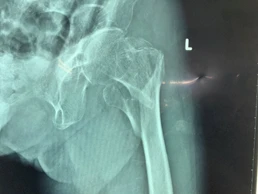 Sau khi chụp X-quang, các BS kết luận đùi trái bà H. bị gãy nhiều mảnh xương kín. Các BS đã tiến hành phẫu thuật nối các mảnh xương gãy với nhau. Hiện cụ H. có thể sử dụng khung hỗ trợ để đi lại.