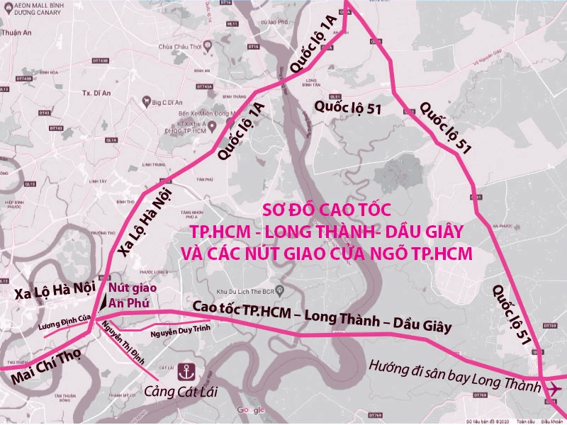 Sơ đồ cao tốc TP.HCM - Long Thành - Dầu Giây và các nút giao liên quan.