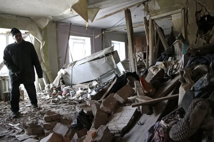Nhà dân ở Donetsk bị đạn pháo đánh trúng (Reuters)