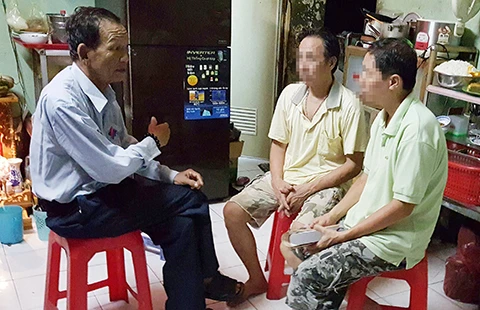 Ông Ngọc đến tận nhà tư vấn cho một gia đình đang có tranh chấp. Ảnh : H.MINH