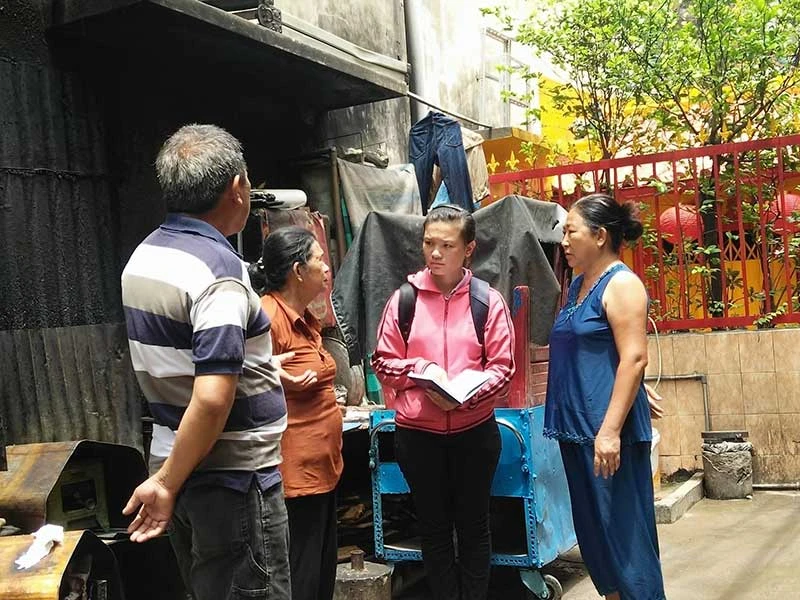 Bà Lý (thứ hai từ trái qua) cùng những người dân trong hẻm 27/59 Nguyễn Thái Bình, quận 1, TP.HCM chia sẻ với PV về nỗi khổ không có giấy tờ tùy thân. Ảnh: ĐÀO TRANG