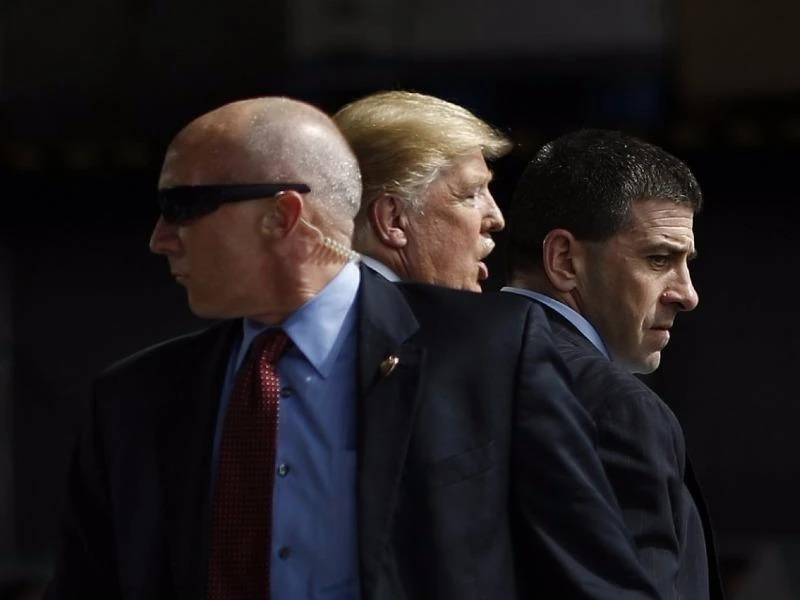Các nhân viên thuộc Cơ quan Mật vụ Mỹ bảo vệ ứng cử viên đảng Cộng hòa Donald Trump tại bang Ohio hồi tháng 3 năm nay. Ảnh: BLOOMBERG