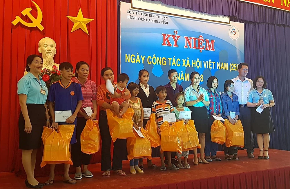 | BS Nguyễn Văn Thành, Giám đốc BV Bình Thuận, cho biết Tổ Công tác xã hội của bệnh viện được thành lập vào năm 2016, cầu nối các nhà hảo tâm với bệnh nhân đang điều trị tại bệnh viện. Trong năm 2017, Tổ đã giúp 189 ca chi phí điều trị chuyển viện và sinh hoạt với số tiền 700 triệu đồng; Vận động 32 chiếc xe lăn chuyển các khoa và phòng hỗ trợ bệnh nhân đi làm xét nghiệm cận lâm sàng, mua thẻ BHYT cho các bệnh nhân có hoàn cảnh khó khăn. Là cầu nối với Công ty Sun Taxi hỗ trợ 38 chuyến xe miễn phí vận chuyển bệnh nhân nghèo xuất viện, tiếp nhận hơn 660 phần quà, 700 suất ăn miễn phí cho bệnh nhân nghèo. Đặc biệt, ngày 11-2-2018, BV đã phối hợp cùng báo Pháp Luật TP.HCM, Công an Bình Thuận và Trung tâm Văn hóa tỉnh tổ chức chương trình “Ước mơ của Triệu”, hỗ trợ 70 triệu đồng cho bé Triệu, bệnh nhân bị u não, để lại rất nhiều cảm xúc… |