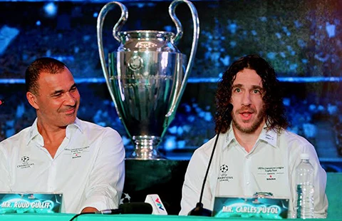 Ruud Gullit và Carles Puyol đến theo một chương trình thương mại của nhà tài trợ cho UEFA Champions League nhưng trong buổi trò chuyện cùng báo chí và người hâm mộ thì họ chính là sứ giả bóng đá châu Âu. Tài ăn nói lưu loát phong cách thể hiện rất nghệ sĩ và hài hước cùng cách nói chuyện thông minh, dí dỏm, cả hai đã để lại những ấn tượng đẹp…