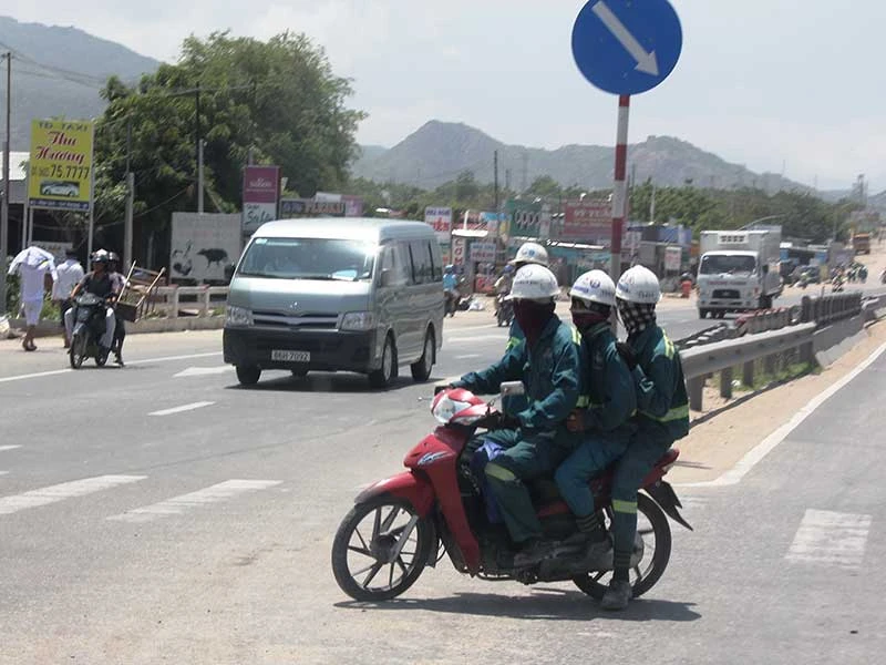 Mỗi khi chúng tôi đi qua quốc lộ 1A, nhất là vào những giờ tan tầm thì rất sợ gặp phải hàng trăm công nhân đang tham gia xây dựng nhà máy nhiệt điện tại Vĩnh Tân, huyện Tuy Phong, Bình Thuận đổ ra quốc lộ. Họ đi bộ băng qua đường không đúng vạch kẻ rất nguy hiểm. Đáng chú ý rất nhiều người đi xe máy không đội mũ bảo hiểm mà chỉ đội mũ bảo hộ lao động mỏng tanh, nhiều xe còn chở ba người. Có người chạy xe trên đường quốc lộ khá xa, từ nơi này về tận Ninh Thuận…