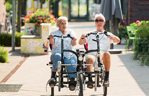 Các cụ thoải mái dạo chơi hoặc thong dong trên những chiếc xe đạp đôi, một cách tự tin và… lãng mạn.