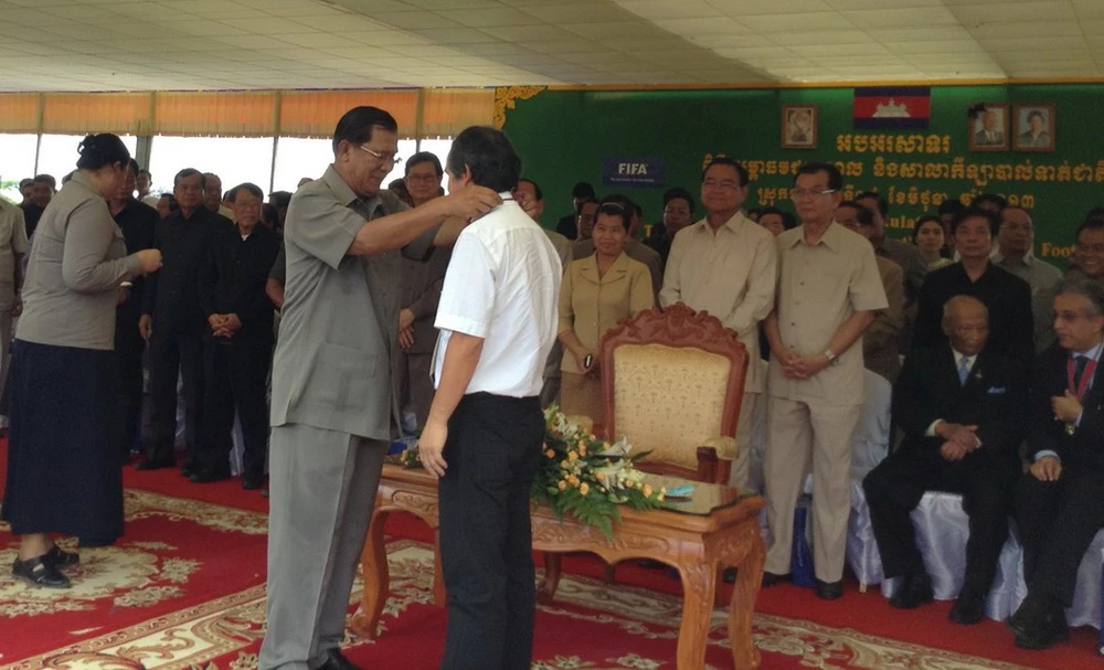 ... và nhận huân chương Công trạng hạng Nhất Campuchia do chính tay Thủ tướng Hun Sen trao tặng. Ảnh: CCT