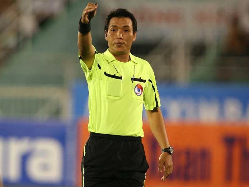 Trọng tài Đinh Văn Dũng đã quyết định tự treo còi. Ảnh: XUÂN HUY