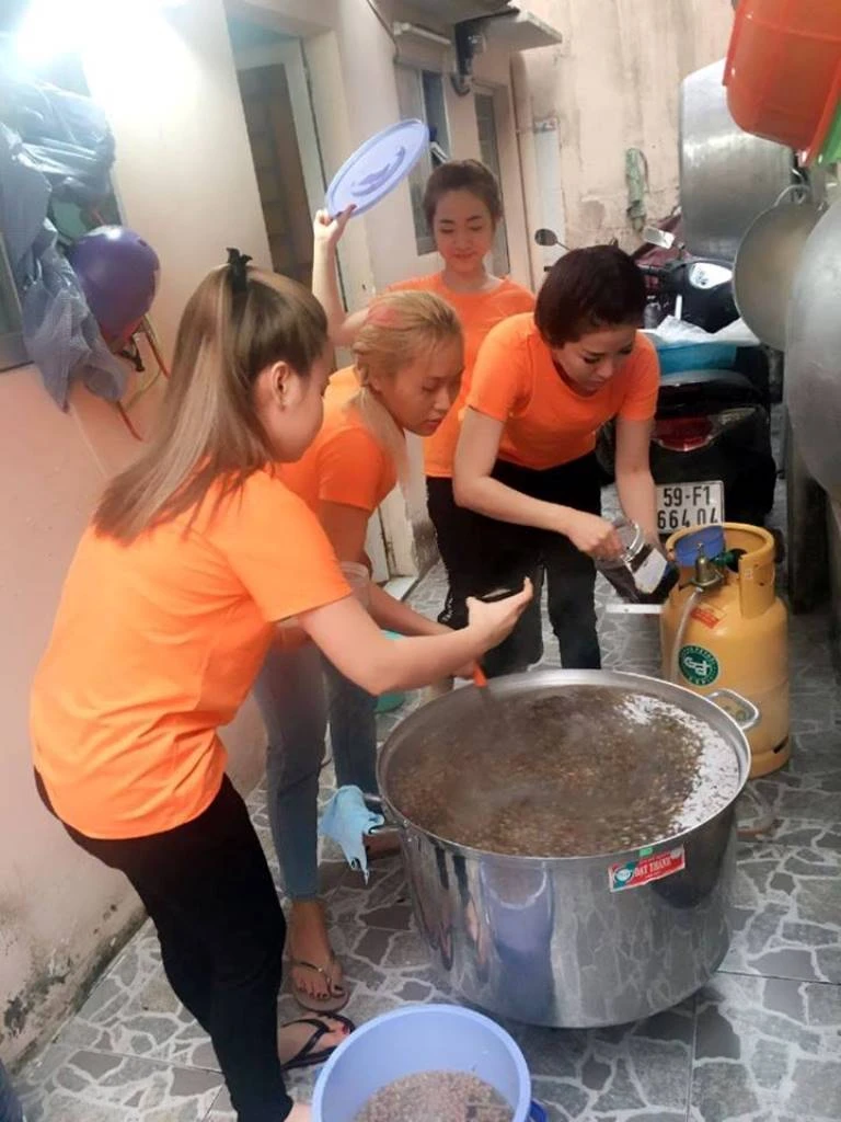 Khi đem ý định này chia sẻ với các bạn, Kim được một số bạn chung chỗ làm nhiệt tình ủng hộ. Để có được gần 600 suất cháo, súp đầy đủ dưỡng chất, từ 12 giờ trưa hôm trước Kim đã phải tới cửa hàng rau sạch để lựa chọn, mua thực phẩm để kịp chiều tối cả nhóm tập trung chế biến. Trong căn phòng trọ chưa đầy 20 m2 (đường Xô Viết Nghệ Tĩnh, quận Bình Thạnh), nhóm năm người của Kim gần như thức cả đêm nấu cháo, súp để đúng 5 giờ sáng hôm sau thuê xe ba gác máy chở ra trước cổng bệnh viện, kịp phát cho người nhà, bệnh nhân nghèo đang đợi.