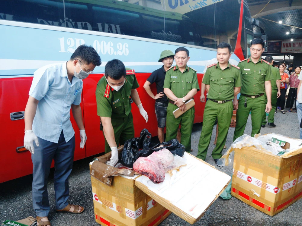 Lực lượng chức năng phát hiện trên xe khách có 2 thùng xốp loại lớn, chứa sản phẩm động vật (chó thịt) và một số lòng, nội tạng động vật. Tổng trọng lượng 250 kg. Số nội tạng và thịt chó nói trên đã bị biến đổi màu sắc, bốc mùi hôi thối.