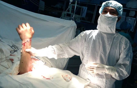 Tối 4-2, trong lúc ẩu đả, anh C. bị chém vào tay trái (phần cổ tay). Bệnh nhân được đưa cấp cứu tại bệnh viện huyện rồi chuyển lên BV Chấn thương Chỉnh hình. Tại đây, các bác sĩ ghi nhận cánh tay trái bị đứt gần hết, bệnh nhân bị sốc nặng do mất máu. Ngay lập tức bệnh nhân được hồi sức tích cực. Sau khi ổn định, các bác sĩ quyết định nối cánh tay cho bệnh nhân. Trải qua tám giờ phẫu thuật, cánh tay của anh C. đã được nối thành công.