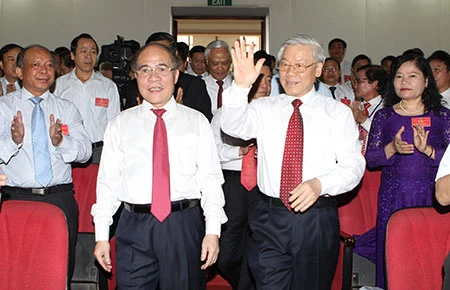 Dự lễ kỷ niệm có Tổng Bí thư Nguyễn Phú Trọng (ảnh), Chủ tịch Quốc hội Nguyễn Sinh Hùng cùng lãnh đạo nhiều ban, ngành trung ương. Nguyên Tổng Bí thư Đỗ Mười, Lê Khả Phiêu, Nông Đức Mạnh, nguyên Chủ tịch nước Lê Đức Anh đã gửi lẵng hoa tới buổi lễ.