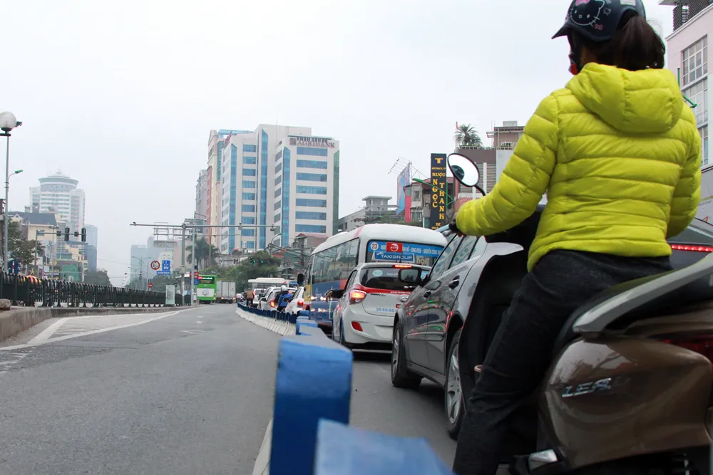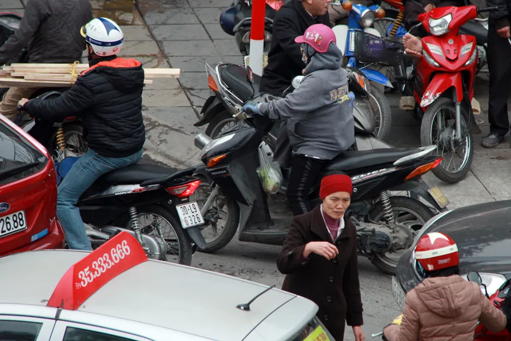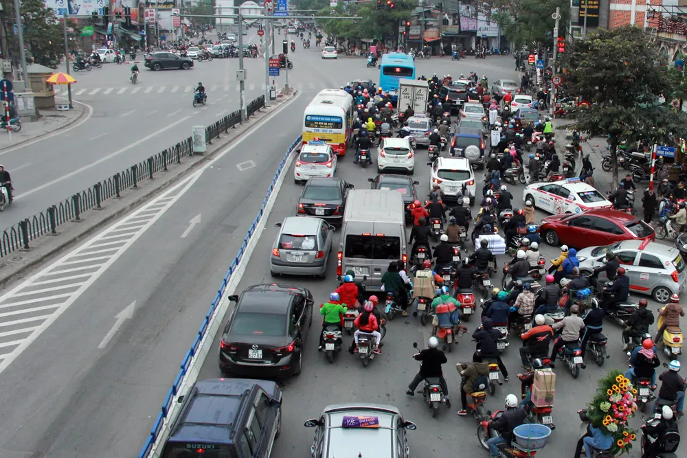 Tại các nút giao cắt giao thông hỗn độn, chen chúc.