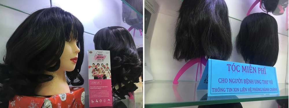 Nhân dịp này, các nhà tài trợ cũng trao nhiều phần quà như tóc giả cho bệnh nhân ung thư vú.