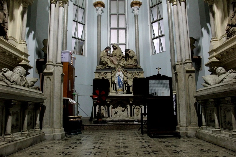 Mỗi ngày, giáo xứ Chợ Đũi (quận 1, TP.HCM) đón hàng trăm người đi lễ và du khách tham quan. Ông Huyện Sỹ qua đời năm 1900, khi nhà thờ chưa xây xong. Trong di chúc, ông dành 1/7 tài sản của mình để xây nhà thờ.