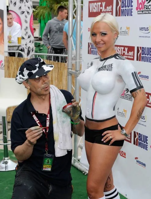 Tuy nhiên, người hâm mộ không chỉ "nghẹt thở" bởi những trận đấu sôi nổi, hấp dẫn mà còn được dịp "đốt mắt" cùng hình ảnh người đẹp dưới lớp áo body painting ấn tượng khó quên.
