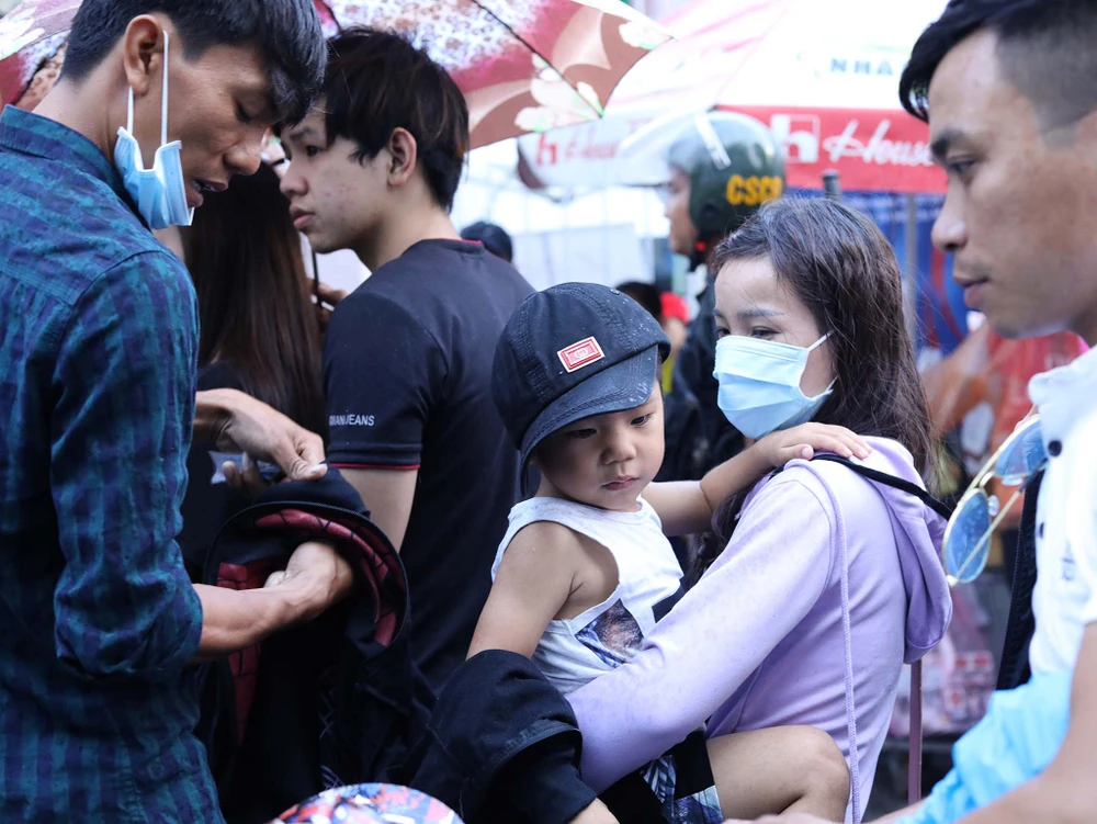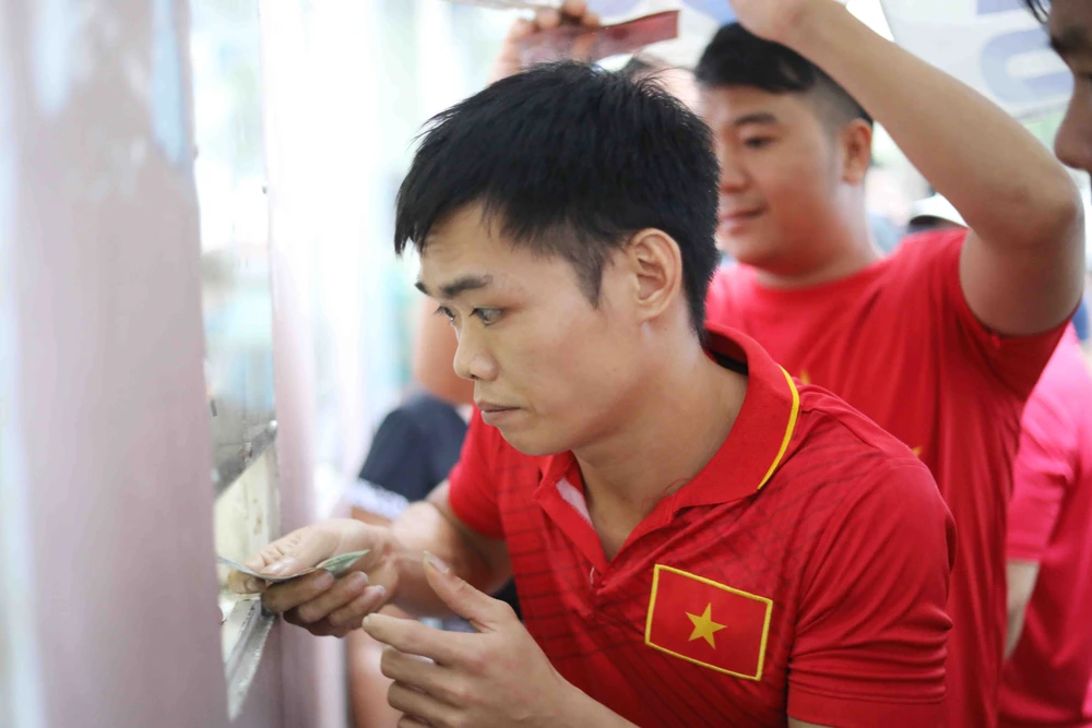 Dòng người đông đúc tiếp tục xếp hàng mua vé.