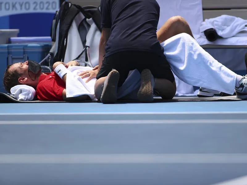 Tại tổ hợp quần vợt Ariake Tennis Park, nhiều lần tay vợt Nga nằm xuống vì bị sốc nắng, đến độ tổ bác sĩ phải vào can thiệp và massage cho Medvedev.