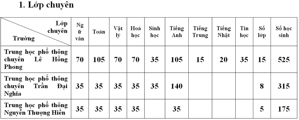 Chỉ tiêu cụ thể của các trường, lớp chuyên như sau: