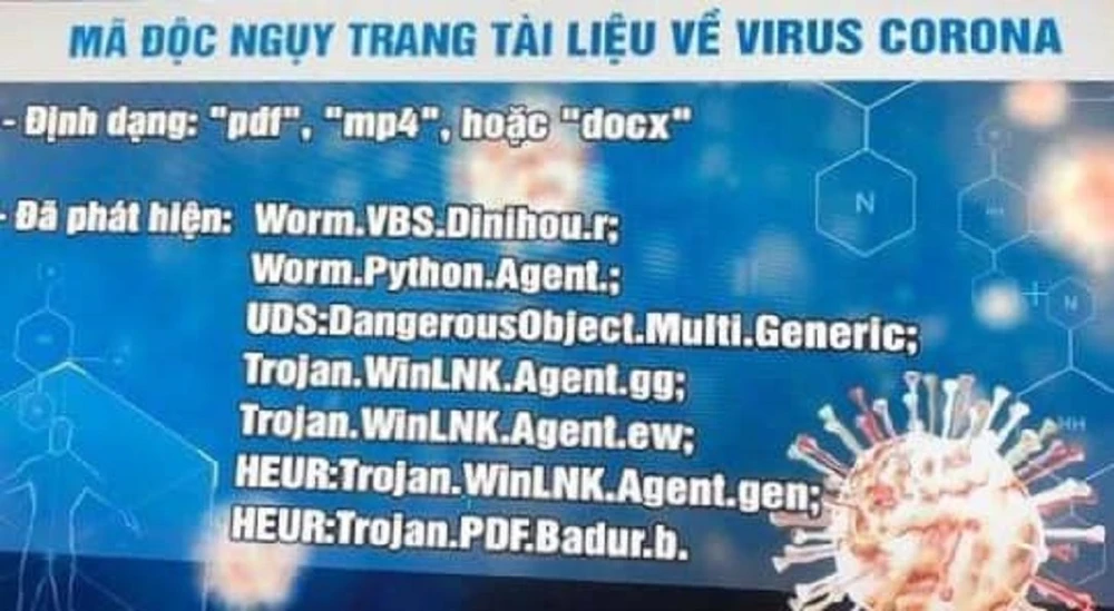 Ngày 16-2, Công an TP Hà Nội cho biết qua công tác nắm tình hình, các đơn vị nghiệp vụ đã phát hiện việc phát tán mã độc ẩn dưới các tập tài liệu liên quan đến virus COVID-19.