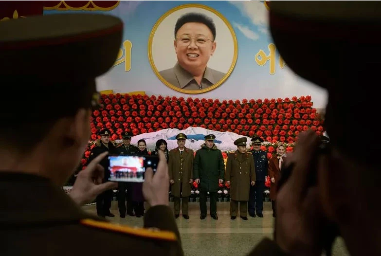 Sĩ quan Nga, Iran, TQ, Triều Tiên chụp ảnh chung tại một sự kiện tưởng niệm cố lãnh đạo Triều Tiên Kim Jong-il ở Bình Nhưỡng ngày 14-2-2019.