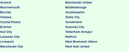 20 CLB đá giải ngoại hạng Anh mùa giải 2016-2017