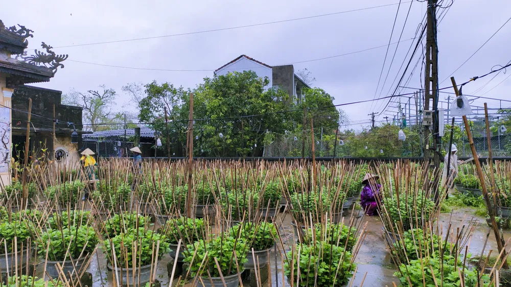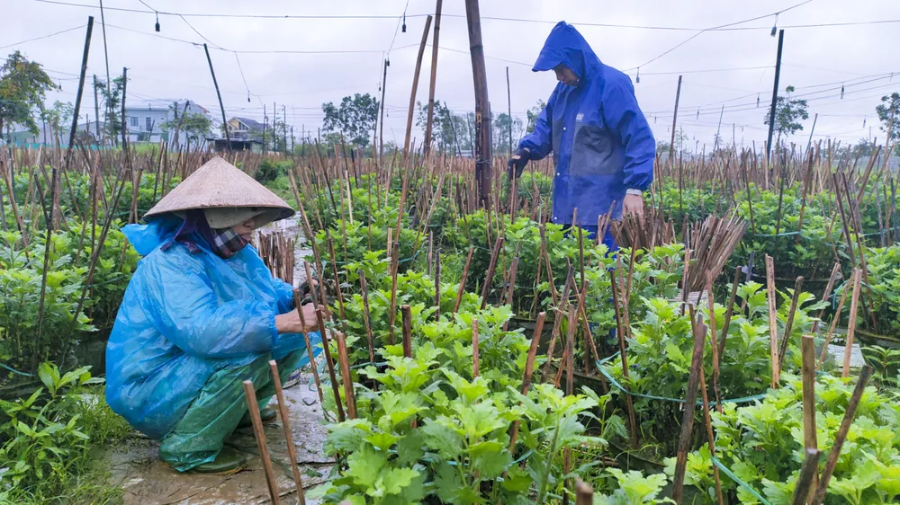 Những ngày này, thời tiết Thừa Thiên - Huế mưa và giá lạnh nhưng công việc chăm sóc hoa vẫn đang diễn ra tất bật. Ảnh: NGUYỄN DO