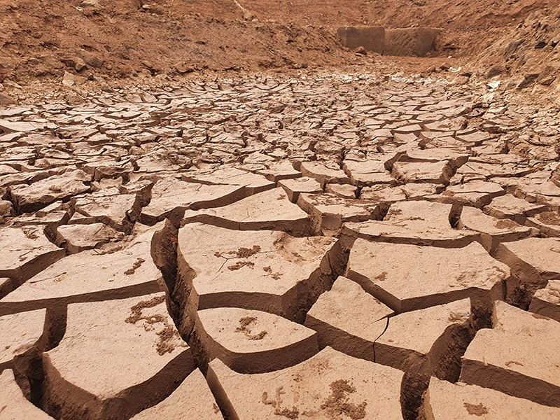 Lòng hồ thủy lợi ở Đắk Lắk nứt toác do khô hạn. Ảnh: HT