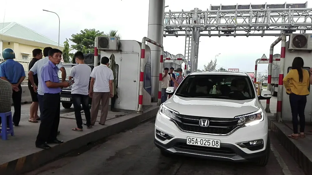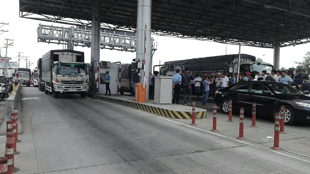 Tài xế quyết cố thủ, không qua trạm mặc dù trạm đã mở barie cho xe qua.