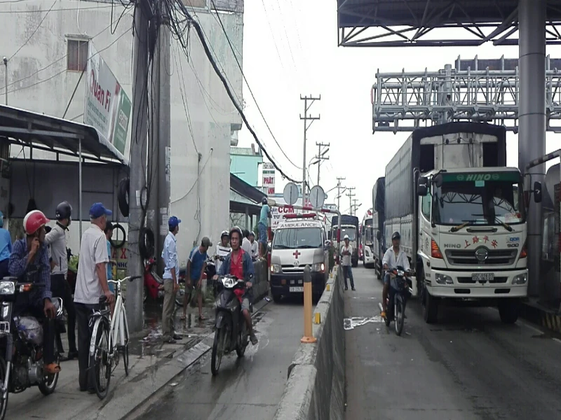Điều đáng nói lúc này có một xe cứu thương đang lưu thông từ Cần Thơ đi Hậu Giang phải luồn lách khó nhọc để vượt qua các xe đang bị kẹt. Do làn ô tô đã bị các tài xế cho xe chiếm nên xe cứu thương buộc phải di chuyển vào làn xe máy để qua trạm.