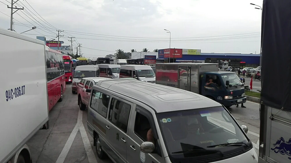 Đến 17 giờ cùng ngày, giao thông qua lại tại đây vẫn bị ách tắc nghiêm trọng hàng kilomet, các tài xế bấm còi inh ỏi.